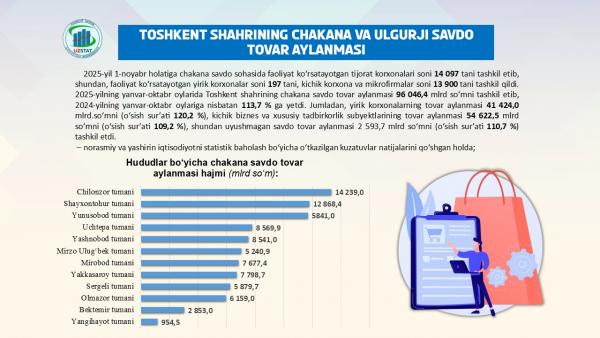 Toshkent shahrining chakana va ulgurji savdo tovar aylanmasi